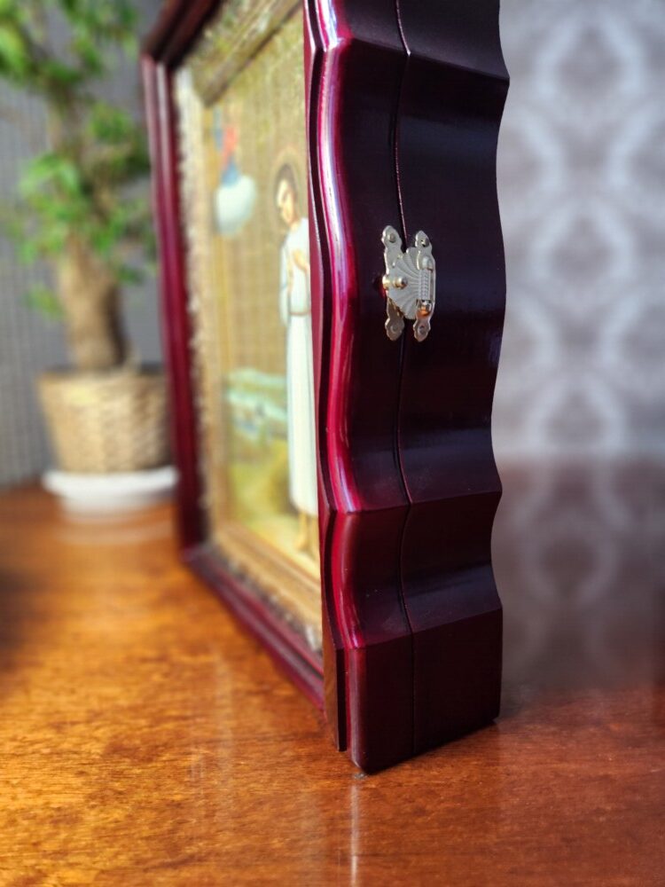 Ікона – липова дошка, дубові шпонки, левкас, олійні фарби, сусальне золото, лакове покриття.