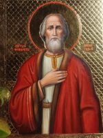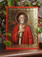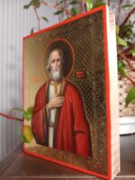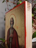 Ікона ручної роботи написана олійними фарбами на липовій дошці з нанесеним левкасом, фон ікони з сусального золота оздоблений чеканним орнаментом.