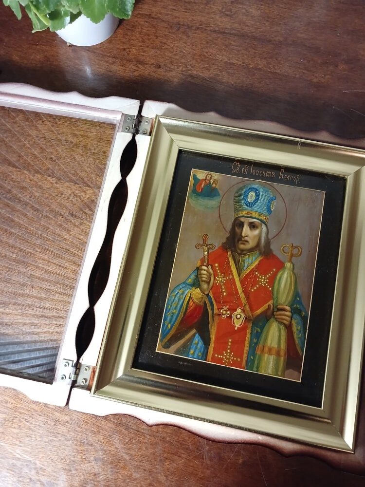 Ікона написана на дошці / ікона написана олійними фарбами / ікона в кіоті / кіот з вільхи / ікона під склом