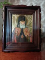 Ікона виконана з липова дошка з дубовими шпонками, ікона написана на левкасі/ ікона написана олійними фарбами / фон ікони з сусального золота / ікона оздоблена чеканим орнаментом / ікона в кіоті / кіот з вільхи / ікона під склом