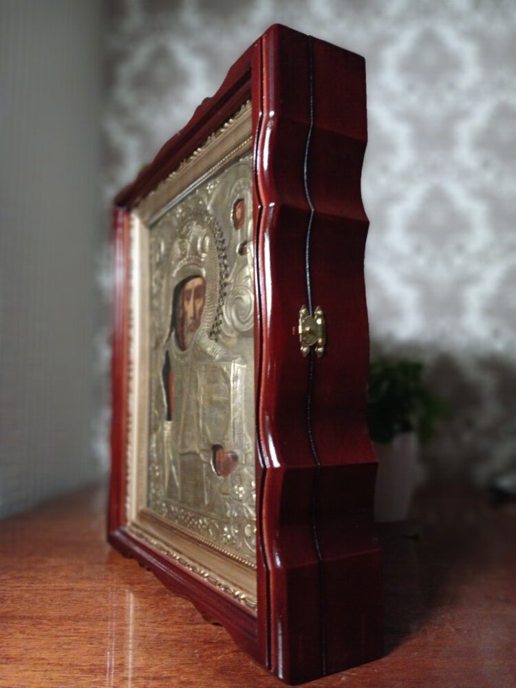 Ікона написана на дошці / ікона написана олійними фарбами / ікона оздоблена латунною ризою/ ікона в кіоті / кіот з вільхи / ікона під склом