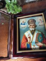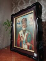 Ікона написана на дошці / ікона написана олійними фарбами / ікона в кіоті / кіот з вільхи / ікона під склом