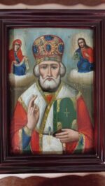 Ікона написана на дошці / ікона написана олійними фарбами / ікона в кіоті / кіот з вільхи / ікона під склом