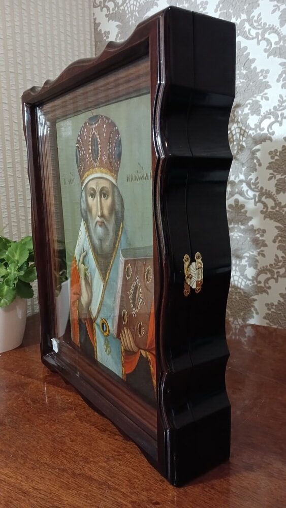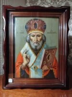 Ікона написана на дошці / ікона написана олійними фарбами / ікона в кіоті / кіот з вільхи / ікона під склом