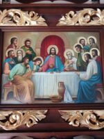 Ікона виконана з липова дошка з дубовими шпонками, ікона написана на левкасі/ ікона написана олійними фарбами / німби ікони з сусального золота / ікона в кіоті / рамка кіота оздоблена різбленими деталями з позолотою сусальним золотом / ікона під склом