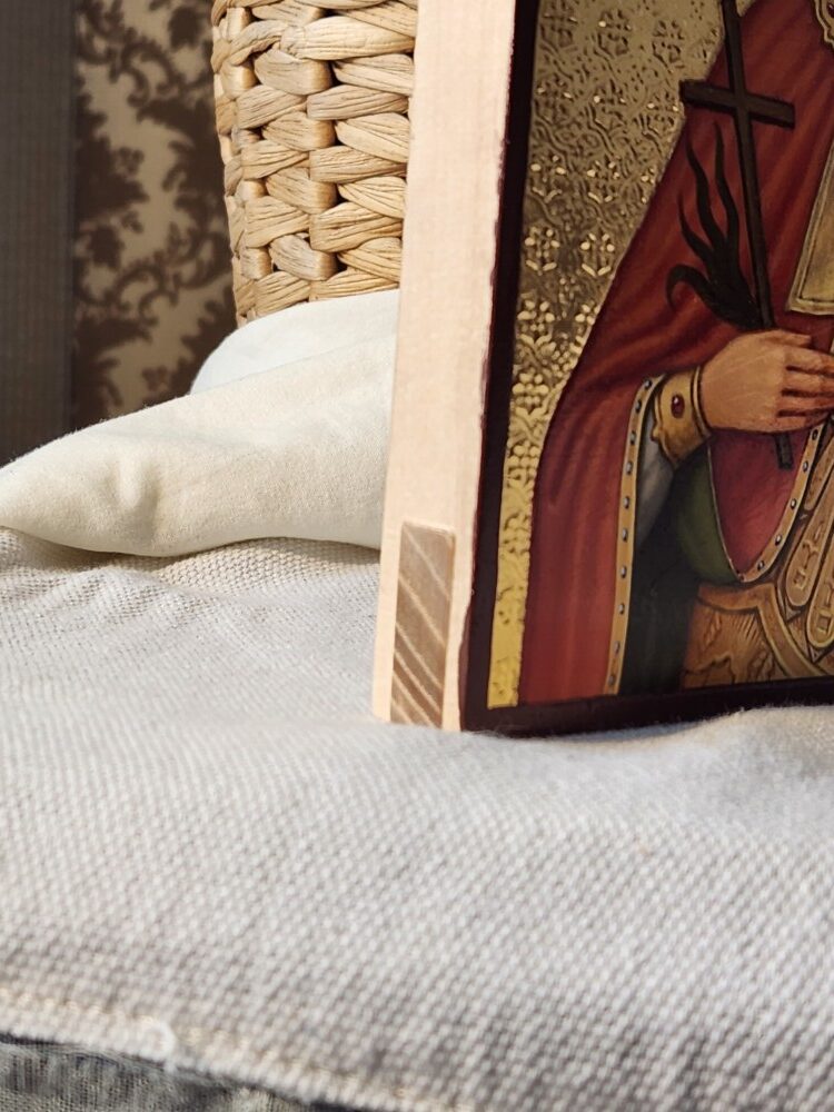 Ікона – липова дошка, дубові шпонки, левкас, олійні фарби, сусальне золото, лакове покриття.