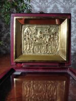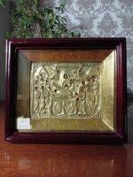 Ікона написана на дошці / ікона написана темперними фарбами / ікона оздоблена латунною ризою / ікона в кіоті / рамка ківота покрита сусальнім золотом / ікона під склом