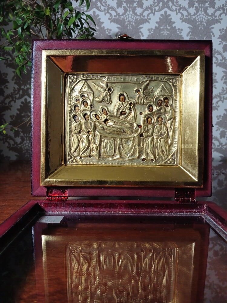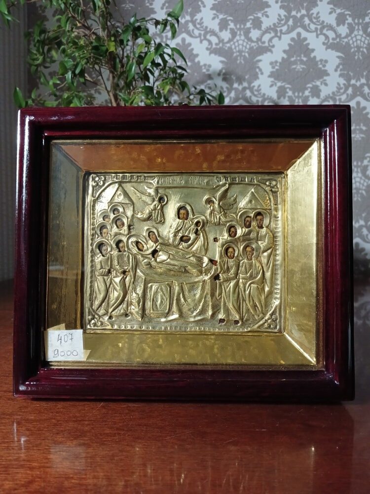 ікона Успіння Пресвятої Богородиці в латунній ризі в ківоті