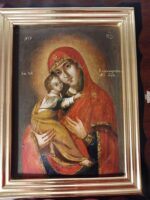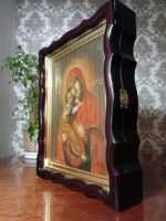Ікона написана на дошці / ікона написана олійними фарбами / ікона в кіоті / рамка кіота покрита сусальним золотом / ікона під склом