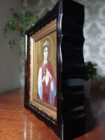 Ікона виконана з липова дошка з дубовими шпонками, ікона написана на левкасі/ ікона написана олійними фарбами / фон ікони з сусального золота / ікона в кіоті / кіот з вільхи / ікона під склом