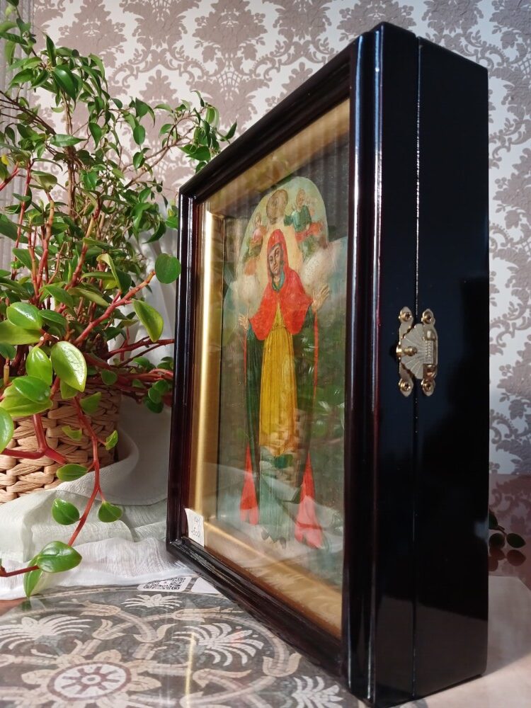 Ікона написана на дошці / ікона написана олійними фарбами / ікона в кіоті / кіот з вільхи / ікона під склом