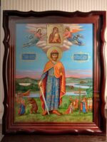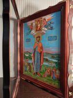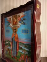 Ікона виконана з липова дошка з дубовими шпонками, ікона написана на левкасі/ ікона написана темперними фарбами / німб святого на іконі з сусального золота / ікона в кіоті / кіот з вільхи / ікона під склом