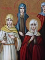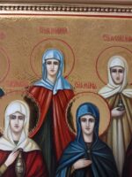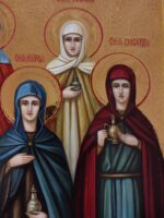 Ікона виконана з липова дошка з дубовими шпонками, ікона написана на левкасі/ ікона написана олійними фарбами / фон ікони з сусального золота / ікона оздоблена чеканим орнаментом / ікона в кіоті / кіот з вільхи / ікона під склом