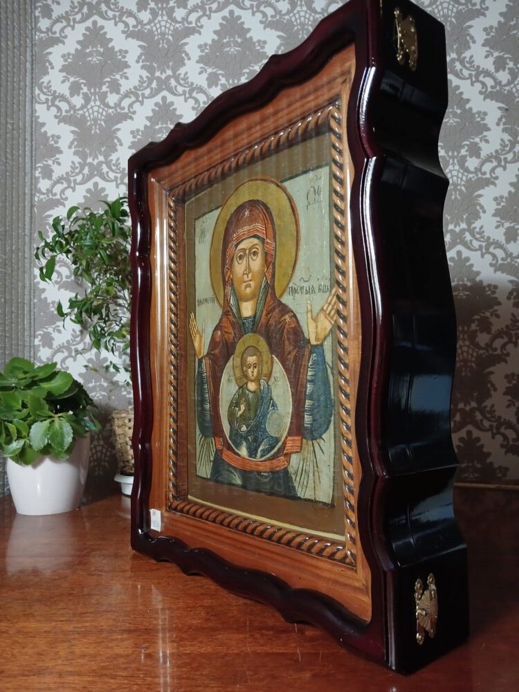 Ікона написана на дошці / ікона написана темперними фарбами / ікона в кіоті / кіот з вільхи / ікона під склом